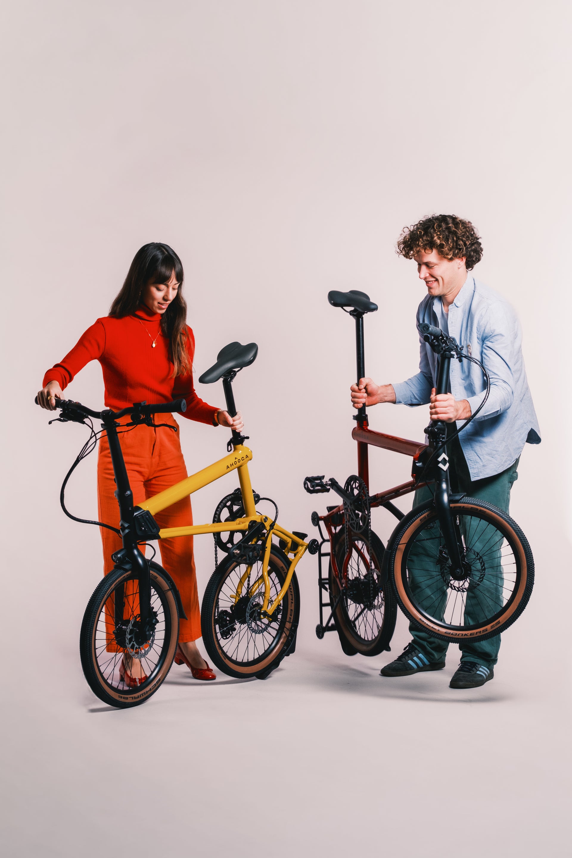 Ahooga solved the challenge of combining folding with a triangular structure through its patented double-triangle twin-tube system. The frame keeps the structural advantages of a real bike while still folding into a compact package.