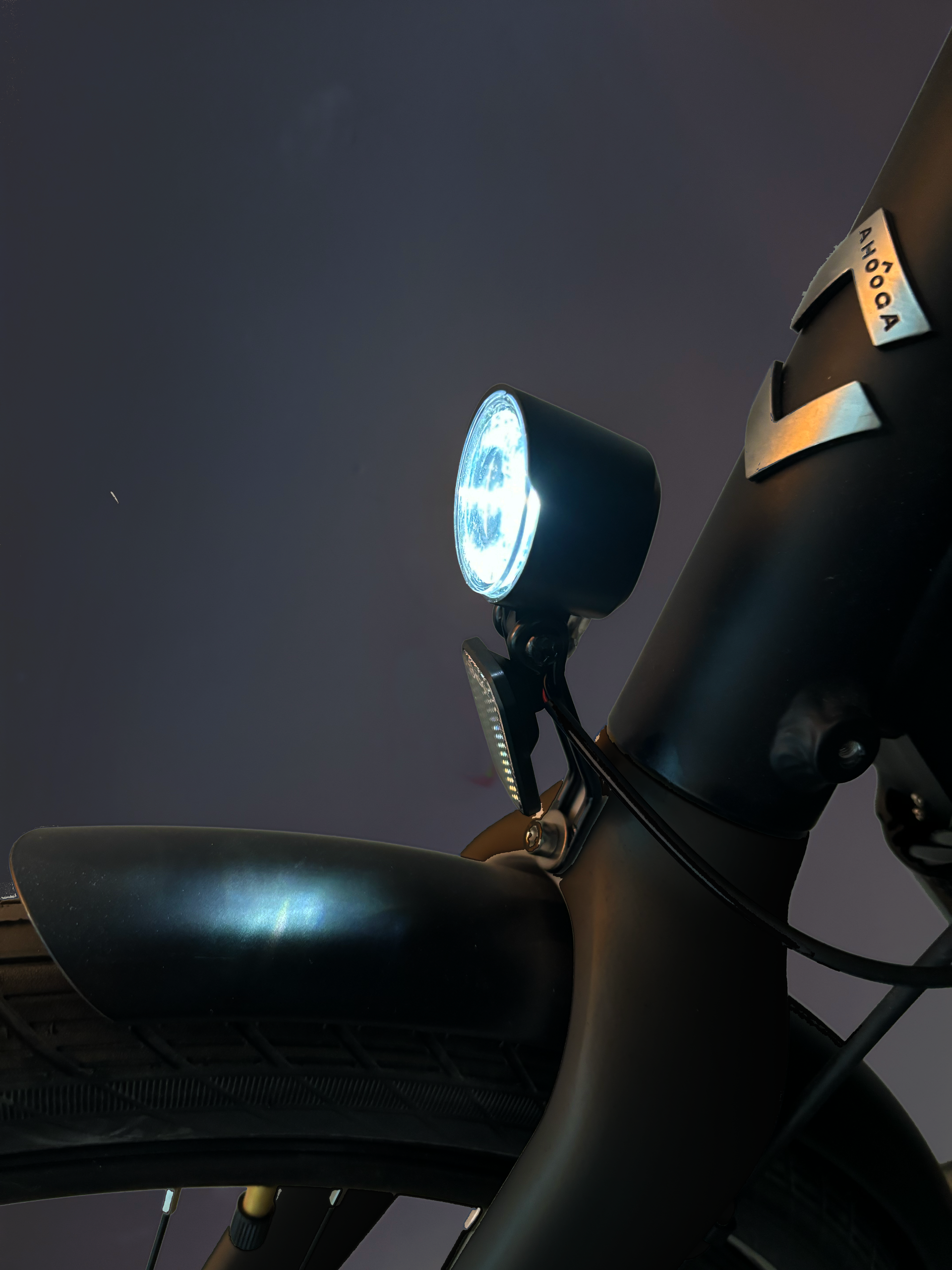 | Lichten | Spanning Arco lampen. 80/30 lumen (voor/achter). USB oplaadbaar en veelzijdige montage. |